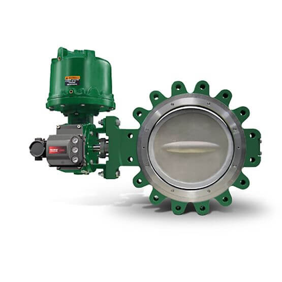The Fisher 8532 high performance Butterfly valve offers outstanding performance under extreme pressure and temperature conditions. The 8532 valve maintains tight shutoff, is available in a fire-tested construction, and can be specified for cryogenic applications. Available as either a flangeless (wafer style) design, single flange (lugged), or Double Flanged design.